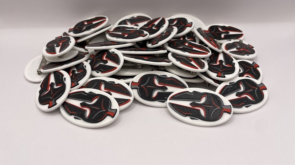 Na základě zpětné vazby jsme provedli drobné úpravy designu a spustili sériovou výrobu. Celkem bylo objednáno 50 odznaků a 300 klíčenek. Výroba trvala necelý týden, přičemž finální kompletace – lepení zavíracích sponek na odznaky a připevnění kroužků s řetízkem na klíčenky – zabrala pouhé tři hodiny.